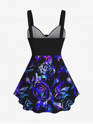 Plus Size Ruched Rose Glitter Print Cinched Tank Top - Concordia - 1x