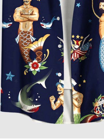 Short Sleeves Shirts > Plus Size Sailor Mermaid Patriotic American Flag Anchor Shark Print Hawaii Cruise Shirt For Men