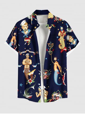Short Sleeves Shirts > Plus Size Sailor Mermaid Patriotic American Flag Anchor Shark Print Hawaii Cruise Shirt For Men