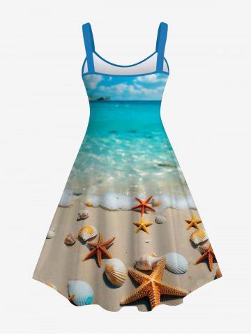 Graphic Dresses > Hawaii Plus Size Sea Creatures Beach Shell Print Backless A Line Tank Dress