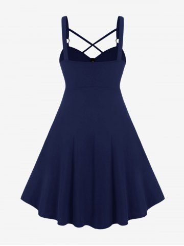 Plus Size Skull Fishnet Panel Ruched Crisscross O-Ring Buckle Dress - Azul De Medianoche - 2x | Us 18-20