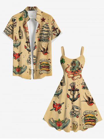 P*****a5Skull Heart Octopus Anchor Hamburger Flowers Print Plus Size Matching Hawaii Beach Outfit For CouplesColor: LIGHT COFFEELove it. Had to take in straps on dress.