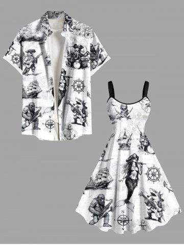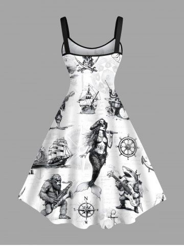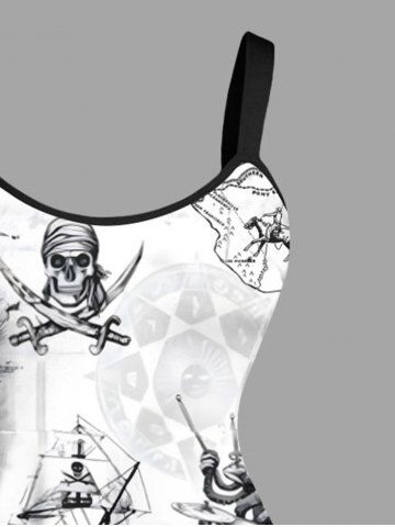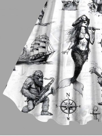Plus Size Skull Pirate Mermaid Ship Rudder Cruise Print Hawaii Tank Dress - Blanco - Blanco