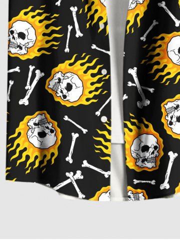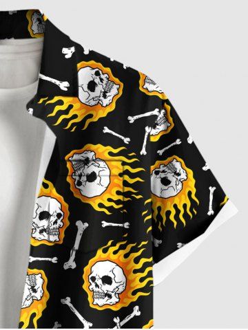 Plus Size Skulls Fire Flame Print Buttons Pocket Hawaii Shirt For Men - Negro - Negro