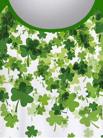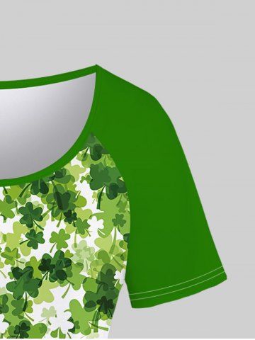 Plus Size St Patrick's Day Clovers Raglan Sleeves Tee - Verde - Verde