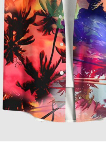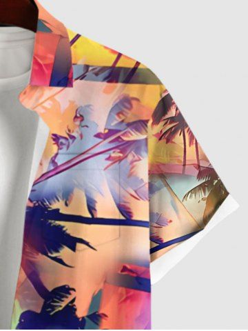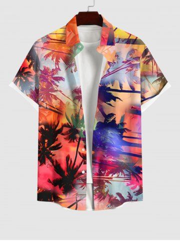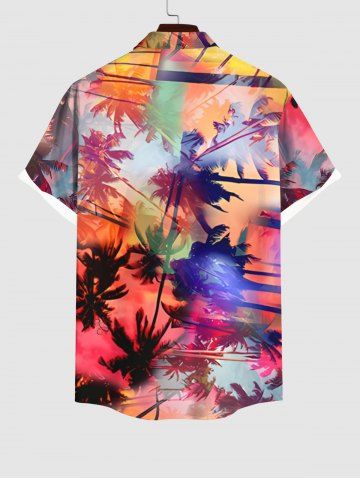 Plus Size Tie Dye Ombre Coconut Tree Tropical Leaves Print Hawaii Button Pocket Shirt For Men - Multicolor-a - 2xl