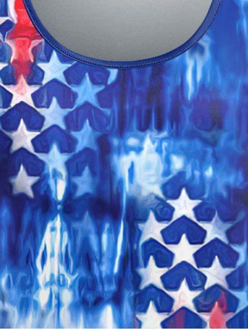 Plus Size Tie Dye Patriotic American Flag Print T-shirt - Azul - Azul