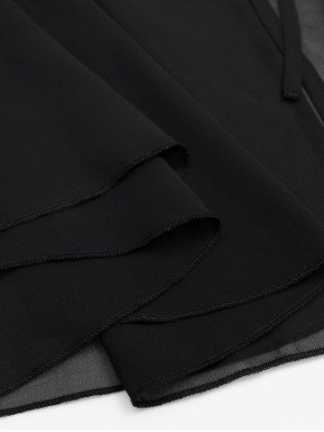 h*****n5Halloween Spider Web Grommets Buckle Chain 3d Printed Tank Dress and Sheer Mesh Tied Cape Plus Size OutfitColor: BLACKThe dress appears to have a belt in the image, it doesn't, the belt is a printed image on the dress. I'm highly disappointed in this. The fabric isn't the best quality either, I doubt I'll ever wear this dress but if I do it'll likely be a one and done due to the poor quality.
