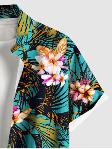 Plus Size Tropical Leaf Flowers Print Buttons Pocket Hawaii Shirt For Men - Verde - Verde