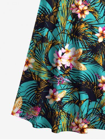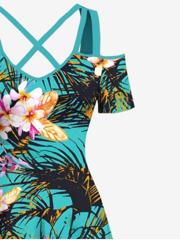 Plus Size Tropical Leaf Flowers Print Cold Shoulder Crisscross Hawaii Maxi Dress - Verde Oscuro - 6x