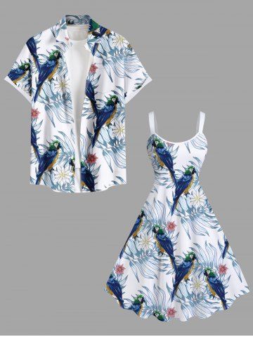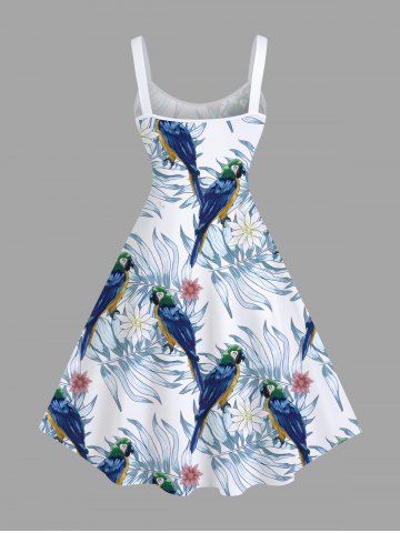 Plus Size Tropical Leaf Flower Parrot Print Hawaii A Line Tank Dress - Blanco - Blanco
