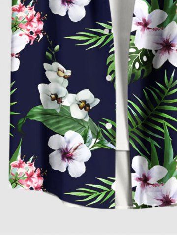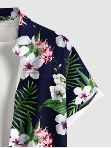 Plus Size Tropical Leaves Floral Print Hawaii Button Pocket Shirt For Men - Negro - Negro