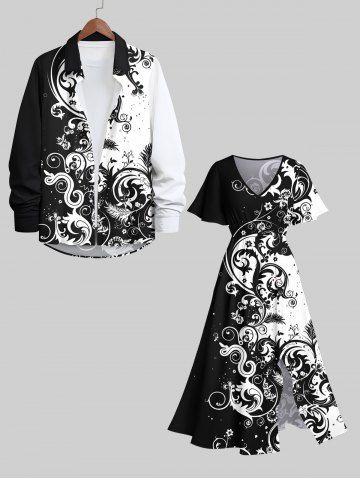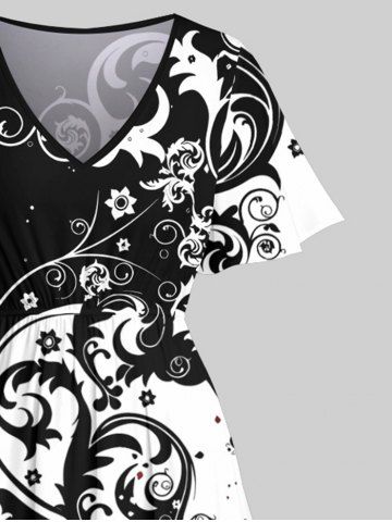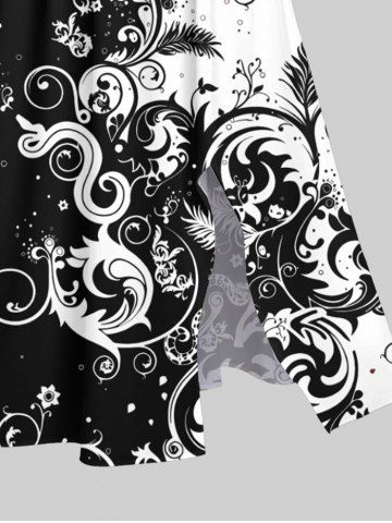 Plus Size Two Tone Paisley Floral Leaf Print Split Hawaii Midi Dress - Negro - Negro
