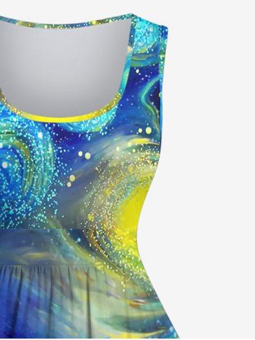 Plus Size Vintage Glitter Spiral Painting Galaxy Print 1950s Hawaii A Line Dress - Multicolor-a - 3x