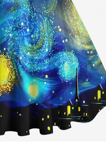 Plus Size Vintage Glitter Spiral Painting Galaxy Print 1950s Hawaii A Line Dress