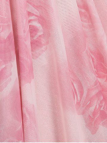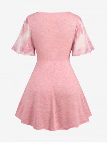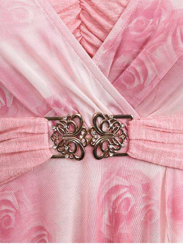 Rose Print Ruffles Tulip Hem Surplice 2 In 1 Top and Floral Gym 3D Jeggings Plus Size Outfit - Rosa Claro - Rosa Luz