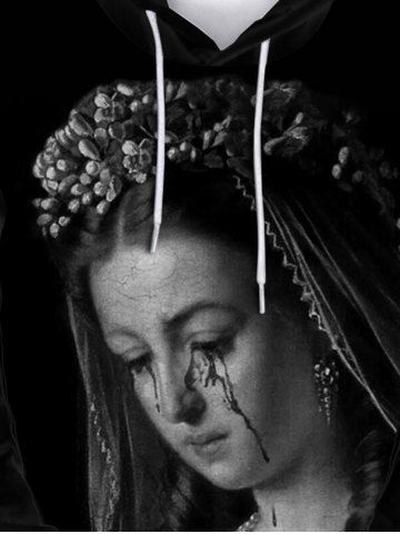 Gothic Scary Beauty Print Front Pocket Flocking Lined Hoodie