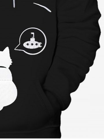 Sudadera Sudadera con Capucha Estampada Gato Bolsillo Delantero Niños - Negro - Negro