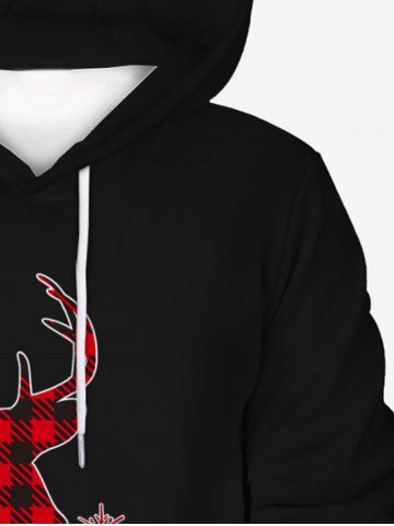 Mens Merry Christmas Elk Printed Plaid Front Pocket Pullover Hoodie