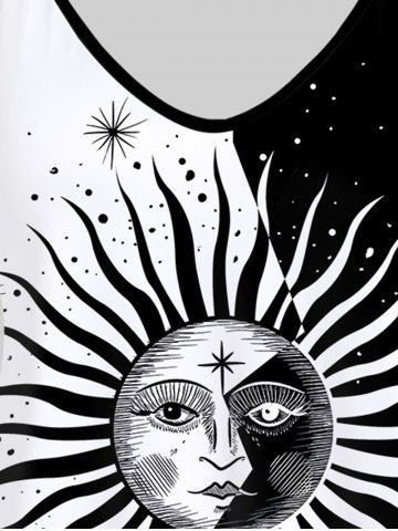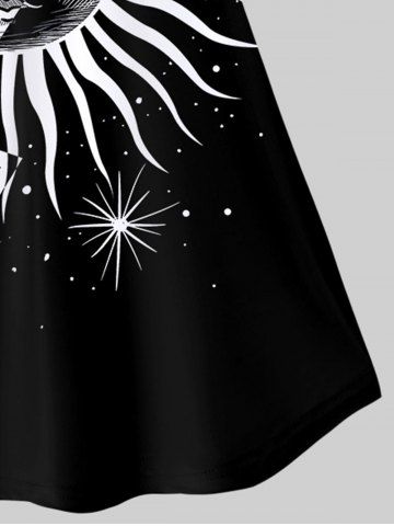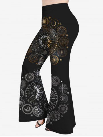 Sun Moon Printed Cami Top and Flare Pants Plus Size Summer Outfit - Negro - Negro