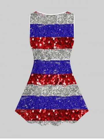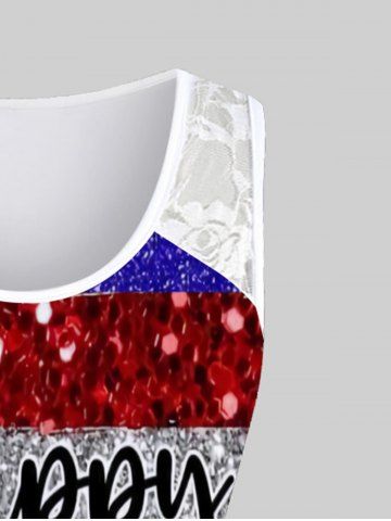Plus Size Patriotic American Flag Printed Lace Panel Tank Top