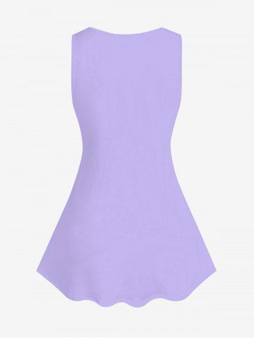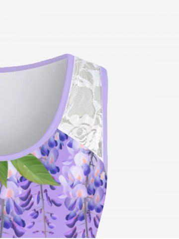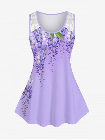 Tank Top con Estampado Floral de Talla Extra con Encaje Insertado - Purpúreo Claro - Luz Púrpura
