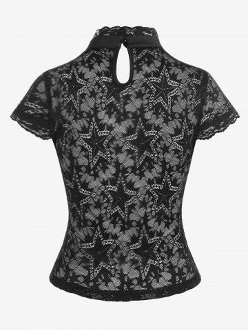 Top de Encaje con Texto de Estrella - Negro - Negro