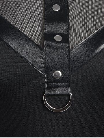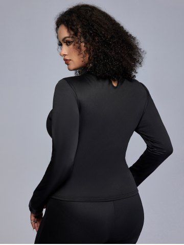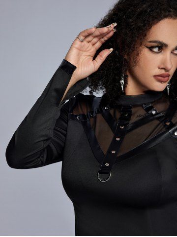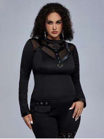 Top de Manga Larga con Remaches con Panel de Malla - Negro - Negro