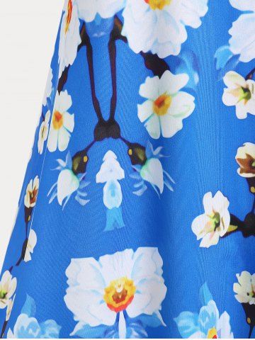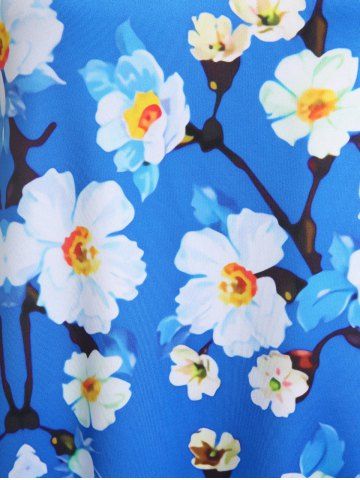 Top Fluida con Estampado de Flores y Aves - Azul - Azul