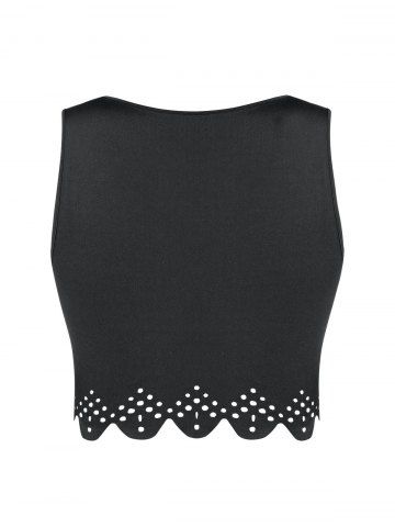 Top Recortada con Detalle Festoneado de Talla Extra - Negro - Negro