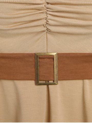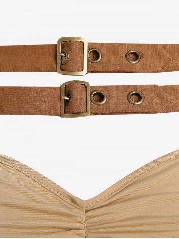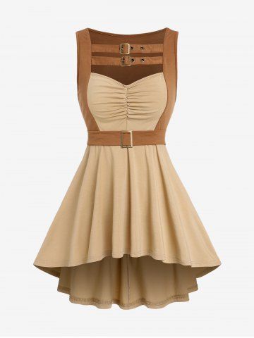 Â*****a4Gothic Two Tone Buckle Cutout Ruched High Low Sleeveless TopColor: COFFEE Size: M | US 10Absolument fabuleux. Quel style excellent nous donne ce haut une fois qu'on le porte...nIl fait bien sûr steampunk en soi, mais je le porterai absolument en toute circonstance, même avec un jean ça passe.