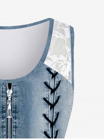 Top Sin Mangas con Estampado 3D con Cremallera - Azul Claro - Azul Claro