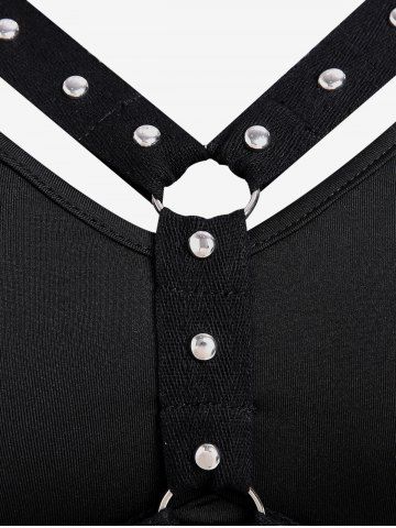 E*****r4Gothic Studs Harness Cropped Tank TopColor: BLACK Size: 3X | US 22-24Makes a great bathing suit top. I'm a bigger girl so it does tend to ride up some but I just throw a see-through cover on and it's super cute with a bit of badass with a black swimsuit skirt