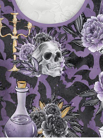 A*****a4Gothic Bat Rose Skull Print Lace Panel Tank Top (Adjustable Straps)Color: PURPLE Size: 5X | US 30-32Beautiful and very soft and comfortable fabric. Fits perfectly. I love it.