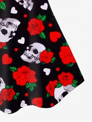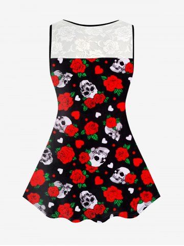 Top Sin Mangas de Encaje con Estampado de Rosa y Corazón - Rojo - Rojo