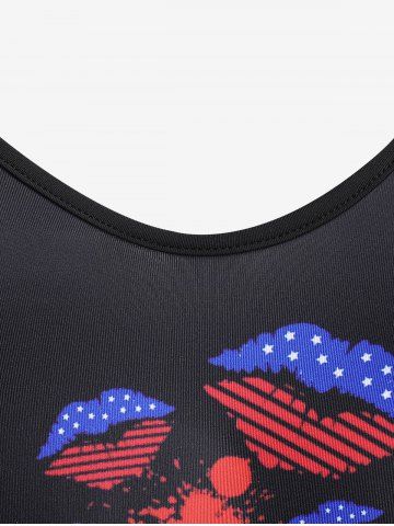 Top Sin Mangas de Talla Grande con Estampado de Bandera de Estados Unidos - Negro - Negro