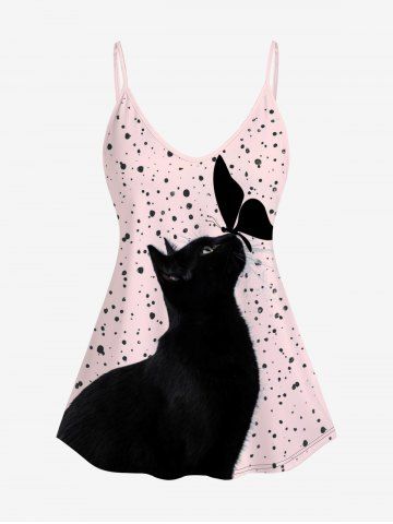 Top Sin Mangas de Talla Grande con Estampado de Mariposa - Rosa Claro - Rosa Luz