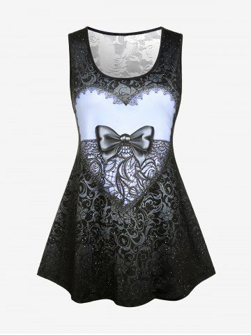 Top Sin Mangas Encaje Estampado Corazón Moño 3D - Negro - Negro