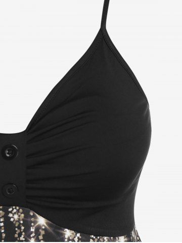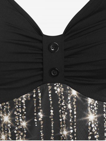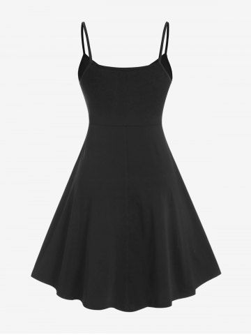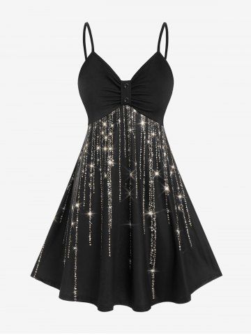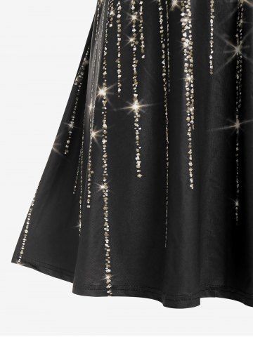 Vestido de Fiesta de Tirante Fino con Estampado de Glitter de Talla Extra - Negro - Negro