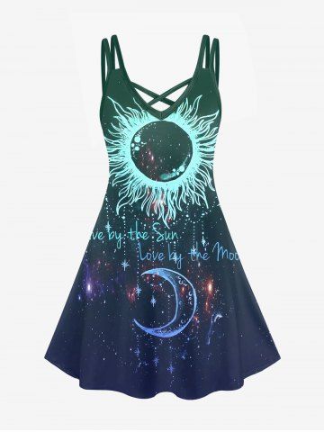 Graphic Dresses > Vestido Campana Talla Extra Estampado Sol y Luna