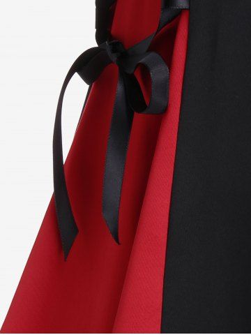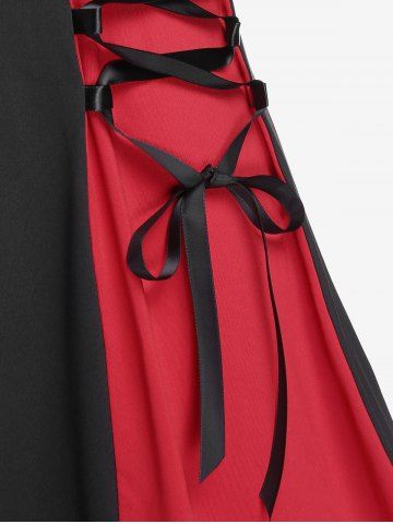 Alternative & Gothic Dress > Vestido de Chaleco con Anillos de Encaje con Cremallera Frontal de Bloqueo de Color