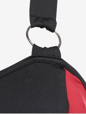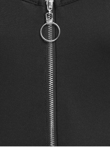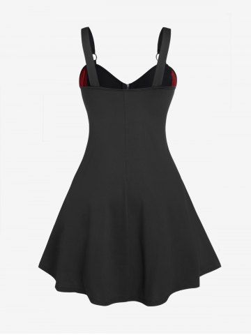 Vestido de Chaleco con Anillos de Encaje con Cremallera Frontal de Bloqueo de Color - Negro - Negro