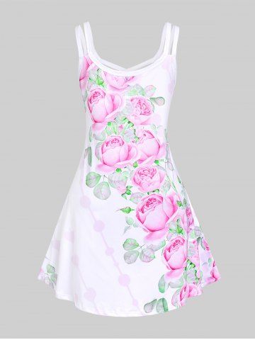 Graphic Dresses > Vestido de Sol en Talla Extra con Estampado de Flores con Escote Pronunciado en Espalda