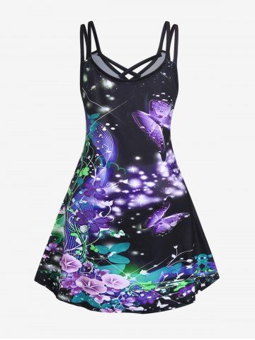 T*****y5Color: BLACK Size: 5X | US 30-32Plus Size Floral Butterfly Print Crisscross Sundress - Black - 5x | Us 30-3 Beautiful. Flowy. Long Arrived quickly