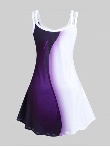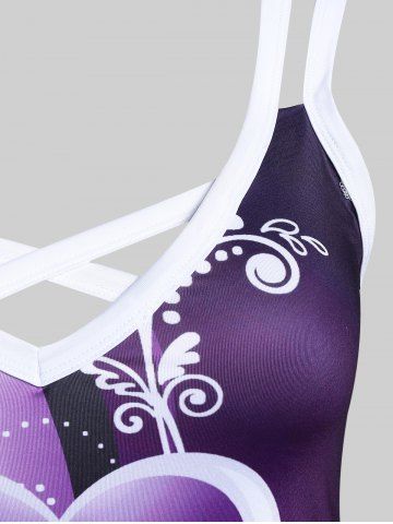 Plus Size Colorblock Heart Floral Print Crisscross Sundress