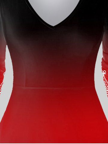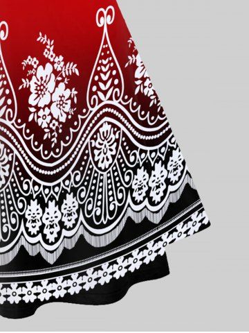 Vestido Falda Ancha Color Ombré Tamaño Plus - Rojo - Rojo