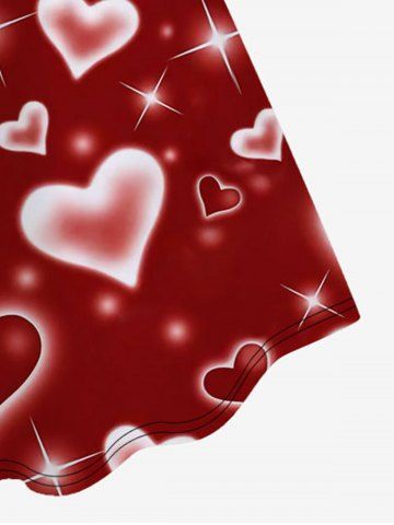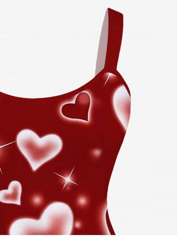 Vestido Línea Vertical Sin Mangas Estampado Corazón Brillo Tamaño Plus - Color Rojo Oscuro - 1x | Us 14-16