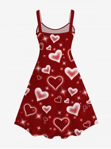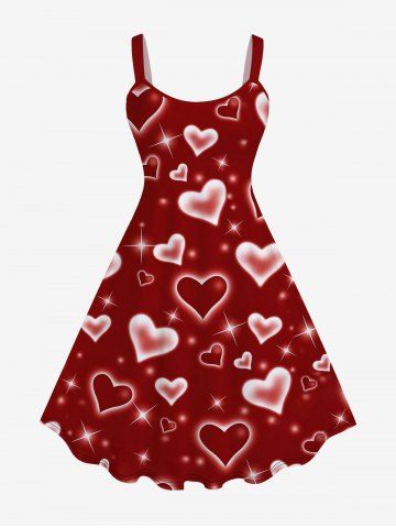 Graphic Dresses > Vestido Línea Vertical Sin Mangas Estampado Corazón Brillo Tamaño Plus