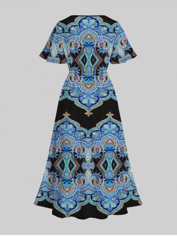 Vestido Línea Vertical Tirantes Delgados Diseño Impreso Étnico Tamaño Plus - Azul - Azul