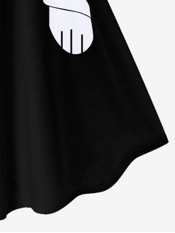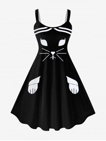 Vestido Midi en a Estampado Dibujo Animado Gato Tamaño Plus - Negro - Negro